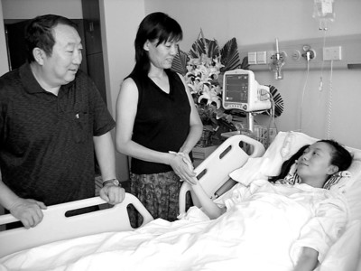 刘岩的父母从呼和浩特赶来,面对躺在病床上的独生爱女,双亲悲痛欲绝。