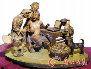 本报梅州讯(记者叶仕欣 通讯员何志林、陈潮华摄影报道)正在广州广东美术馆展览的《“纪念改革开放30周年”全国美展》展厅里,有一件取名为《新路》的泥塑作品分外引人注目,作者用泥巴塑造了4个只有巴掌大小的客家山村里一家三代喜气洋洋的农民,正围在一台手提电脑前上网推销他们的农产品金柚,旁边一条小狗好奇地看着他们。作品原始质朴的造型和充满客家山村的生活气息,让看惯了都市霓虹的城市居民大有眼前一亮的感觉。