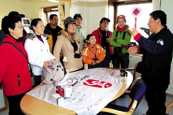 孙军与同事们还在我们的奥运旗帜上签下了名字。再过几天,黄河站的科考人员也要回国,回北京了,可以亲眼目睹奥运的比赛了。据悉,北极黄河科考站是2004年7月28日继南极中山、长城两站后的第三座极地科学考察站。每到冬季来临时,这里的科考人员都会回国过冬。