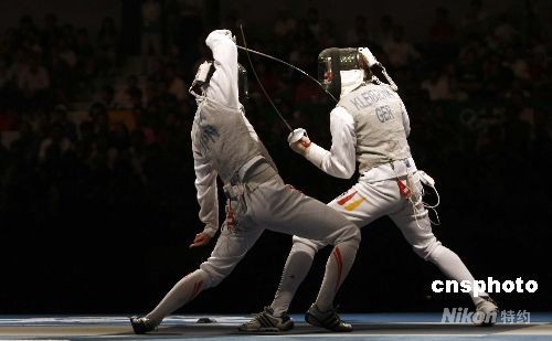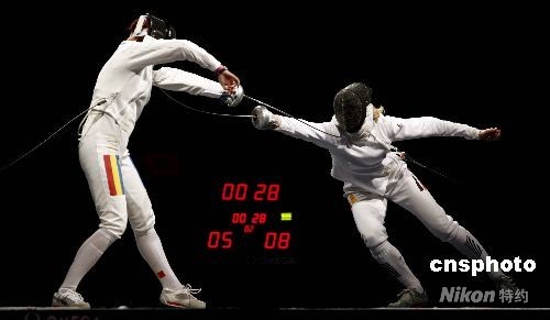 8月13日,北京奥运会击剑比赛进入第五日,在国家会议中心击剑馆进行的女子重剑个人决赛中,德国选手布丽塔-海德曼(右)以15-11战胜罗马尼亚选手安娜-玛丽亚-布伦泽,获得冠军。中新社发 盛佳鹏 摄