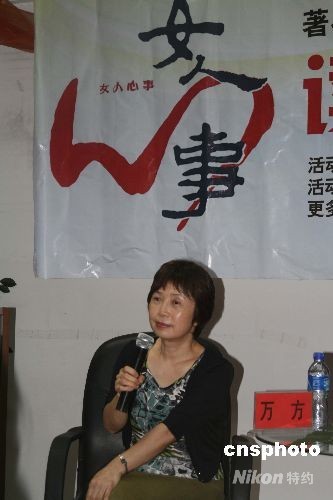 7月12日14时,著名作家万方做客沈阳北方图书城,与读者畅谈创作历程,并签售由长江文艺出版社出版的新书《女人心事》。万方是著名剧作家曹禺的女儿,曾创作过《空镜子》、《空房子》等一系列反映女性情感题材的影视作品。描写一家三代女性情感故事的《女人心事》已搬上屏幕,由陈小艺和冯远征主演,让不少观众对“女人一生,最黑暗和最耀眼的,都是婚姻和爱情”有了共鸣。万方直言《女人心事》是她近几年创作的最满意的一部作品,这部作品包含了自己的婚姻与情感的自传色彩。中新社发 李宪明 摄