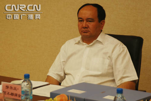 新疆维吾尔自治区党委常委努尔兰·阿不都满金仔细听取汇报