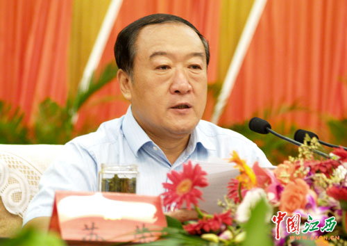 省委书记苏荣通报江西省开展深入学习实践科学发展观活动试点工作有关情况。(江西网记者 刘建明 摄)