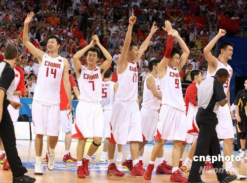 图:中国男篮战胜德国队 中国新闻网 中国新闻网官方账号 2008.08.1622:35 关注 8月16日,北京奥运会男子篮球小组赛第四轮比赛在五棵松篮球馆举行。最终,中国队以59比55艰难战胜德国队,提前锁定奥运会8强席位。其中,姚明获得全场最高的25分。中新社发 任晨鸣 摄