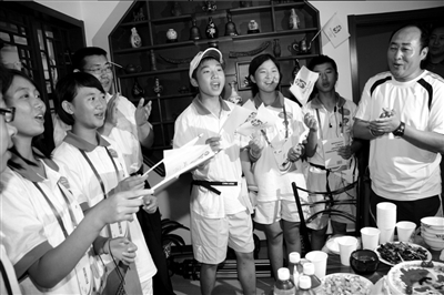 昨晚,在中式装修的两居室里,6名少年与主人一家围坐一桌,用蓝、黄、黑、绿、红5种颜色的面皮,包了“奥运饺子”,并摆出五环造型。来自什邡市红白镇红白中心学校的14岁男孩徐勇,还给大伙介绍了四川饺子和北京饺子的不同包法。