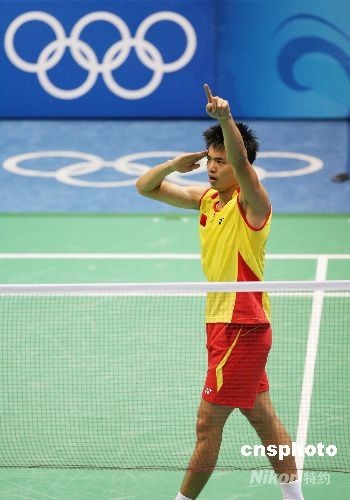 8月17日晚,中国选手林丹在北京奥运会羽毛球男单决赛中以2:0 战胜马来西亚选手李宗伟,夺得冠军。中新社发 武仲林 摄