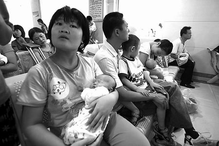 上午9时许,在郑州市儿童医院儿科门诊,候诊区座无虚席,许多父母带着哺乳期的婴儿前来看病。近半个小时内,有5个年轻妈妈撩衣给孩子喂奶,有的用报纸遮着,有的妈妈低头用一块小毛巾盖着乳房和孩子的脸。