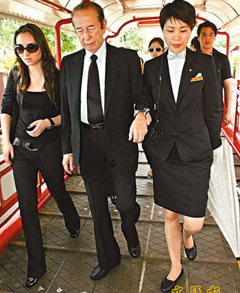 三姨太陈婉珍19日一早到灵堂为亡母打点,好友张耀荣也有吊唁,但四姨太及赌王其它子女则不见人影。何鸿燊穿着全黑色西装于上午9时35分乘座驾到场,他礼貌地向在场守候的记者挥手。