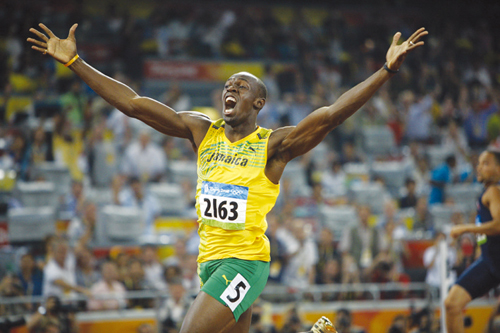 毫无疑问,如果说勇夺8金的美国游泳选手菲尔普斯是本届奥运会诞生的第一个“外星人”,那么牙买加短跑好手博尔特堪称另外一个“外星人”。在100米跑决赛中,博尔特一边拍着自己胸口一边通过终点线的惊人表演已经让“鸟巢”沸腾。他的这种超人实力,在200米比赛中同样显露无遗。半决赛,他只尽力跑了 130米,就遥遥领先其他选手,并最终毫无悬念地获得了第一名。而今晚的决赛,一样进行得没有悬念。在跑过弯道之后,身处第六道的博尔特就把其他对手远远抛在了身后。最后50米,他越跑越快,终于又一次刷新世界纪录。在跑道的尽头,兴奋无比的博尔特跳起了舞蹈,扭腰,摆臀,慢慢地摇、轻轻地跺脚,这个年轻人似乎在向世人证明,他除了可以跑出让人咂舌的速度,也可以奉献出柔美的加勒比风情。