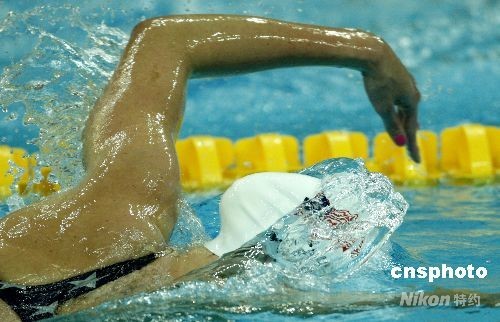 8月14日晚,女子800米自由泳预赛在水立方结束,美国著名运动员霍夫表现不佳,仅游出了8分27秒78的成绩,未能进入决赛。中新社发 杜洋 摄