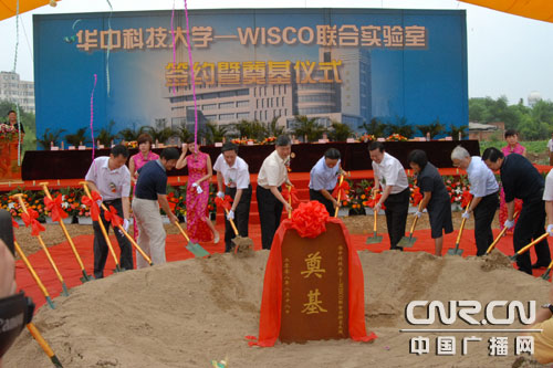 中广网武汉8月21日消息(记者张毛清通讯员耿俊伟)8月18日,华中科技大学和武汉钢铁(集团)公司(WISCO)在汉签署协议,决定依托校方的人才和学科优势,结合武钢的战略发展需求,共同投入资金和人力资源,在华中科技大学校内组建“华中科技大学-WISCO联合实验室”,努力将实验室建成为国内领先的钢铁创新技术研究平台和国内一流的钢铁科技人才培养基地。武钢总经理邓崎琳被聘为该校兼职教授,联合实验室大楼也于签字仪式后奠基。