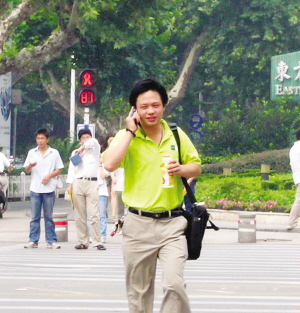 昨天上午9点半,三山桥路口,一名男子边打电话边闯红灯,到了路中间时,一辆正常行驶的轿车原以为他会避让,哪知该男子根本就没有反应,司机只得赶紧刹车。就在众市民替他捏汗之际,该男子只是漫不经心扫了一眼,尔后又煲起了“电话粥”,轻轻悠悠过了马路。9点42分,在太平北路珠江路路口,当时南北方向是红灯,行人都在耐心等候,这时一名男子边打手机边越众而出,闯起了红灯。交警注意到,该男子打手机非常专心,根本就无视过往的车辆。以上的情景也同样发生在中山南路羊皮巷路口,9点46分,一名女子由西向东闯红灯,此时她不是左右观望车辆,而是笑嘻嘻地打着电话,神态十分放松,根本就没有想到南北方向过往的车辆。(郭一鹏)