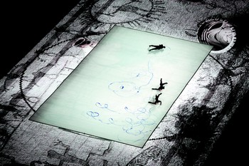 8月19日,沈伟在动身去阿根廷火地岛度假前夕从美国给记者打来越洋电话。他说,《画卷》的表演,要求舞者像毛笔上的锋毫,不停舞动,身体仿佛无骨一般柔软,同时要求每一个动作与每一笔画都配合得丝丝入扣。演员们戴着手套,手套上沾有黑色和蓝色的墨汁。黑色的墨汁用来演绎山水,蓝色则用来绘制云彩,云彩在与画布接触两分钟后消失。墨迹怎样才能清晰无误地出现在画卷上要求出现的地方,是不是会不小心把没有干的墨迹擦模糊,会不会在画布上沾上手印和脚印,这些问题一个个出现在排练的过程中。有一个舞蹈演员被要求在画卷的指定位置画上一个太阳。这个太阳画成什么样才好看?为了画好这个太阳,他用自己的身体在画布上一次次地做实验,画了几千个、几万个圆形,每天在地上滚,弄得全身都是青的。