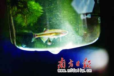 陈教授告诉笔者,唐鱼是在1932年被我国的一位姓林的鱼类学家发现的,因发现这种鱼的人姓唐,故将其取名为“唐鱼”。因为最初地发现地是广州白云山,鱼的身上又有金丝,所以也称“白云金丝鱼”。唐鱼是1988年被列为国家二级保护水生野生动物的。