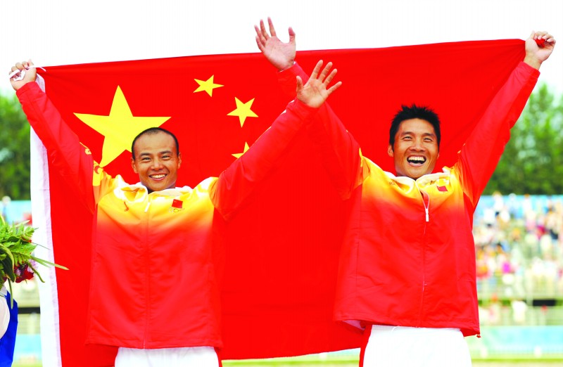 在4年前的雅典奥运会上,首次合作的孟关良和杨文军就突破欧洲列强的围堵,以0.072秒的优势“意外”地抢走男子双人划艇500米的金牌,实现了中国皮划艇项目在奥运会上金牌“零”的突破。当时,孟关良和杨文军在过线之后还一片茫然,直至得到裁判通知,他们才露出胜利的微笑。