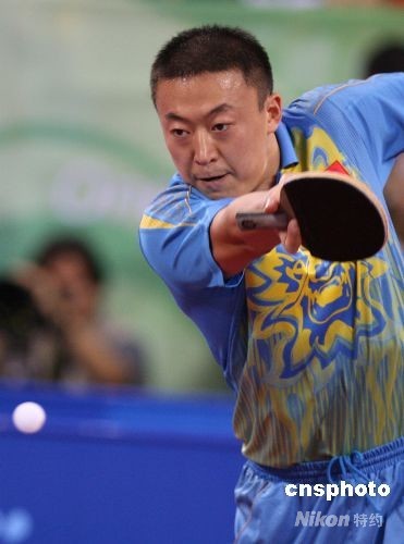 8月23日晚,马琳在北京奥运会乒乓球男子单打决赛中以4:1战胜王皓,夺得冠军。中新社发 武仲林 摄