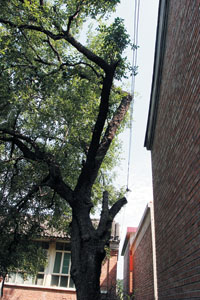 郭老汉家中有棵祖传的百年老枣树,他没想到,几代人精心照料的这棵老树却有可能面临被砍掉的厄运。两年前,同姓的邻居郭某称郭老汉家的枣树根钻到了他家的地基下,威胁到房子的安全,于是要求法院判决砍树。“树根不是我家枣树的。即便是,这棵枣树也是古树,绝对不能砍!”昨天上午,一审败诉的郭老汉告诉记者说,在上诉的同时,他还要申办古树证,以保护这棵百年枣树。