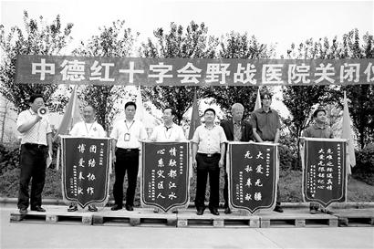 孙红英介绍,作为野战医院,医院主要承担了灾后一个月内的紧急处理和分类,并将患者及时转送到其他大医院进行治疗。就在关闭仪式现场,都江堰市民张燕怀抱着自己的儿子“中德”出现在医生们中间。张燕说,听说医院要撤离她非常难过,希望最后看一眼挽救自己和儿子生命的医院和好心的医生们。