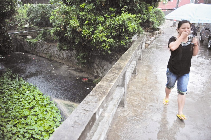 昨天下午,记者来到海沧东孚镇莲花村汤岸小组。村民谢小姐带着记者来到她家附近小溪旁,刺鼻的恶臭迎面扑来,让人感到恶心,水面一片乌黑,行人经过都是捂着鼻子向前快步走。