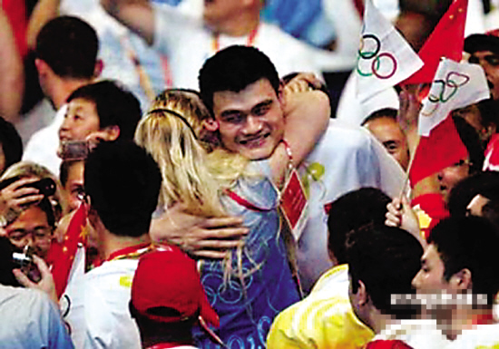 8月24日晚,燃烧了16天的奥运圣火即将熄灭。来自204个国家和地区的运动员再次聚会在“鸟巢”。姚明领衔的中国男篮也走在队伍之中,而兴奋的他也激动地和一名金发美女热情相拥。