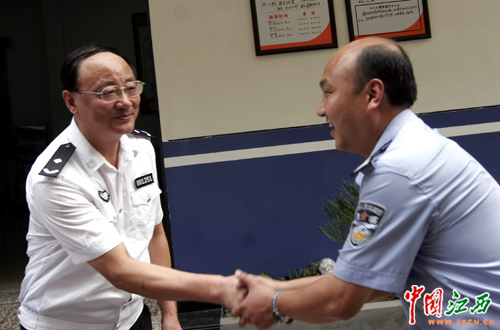 8月27日下午,江西省公安厅向陈勇琦警务室赠送了一辆新警车。(江西网记者 邓小勇 摄)