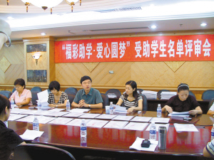 评委们正在讨论受助学生名单