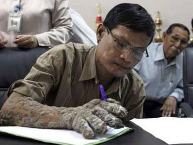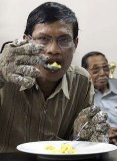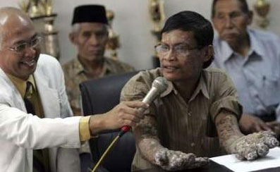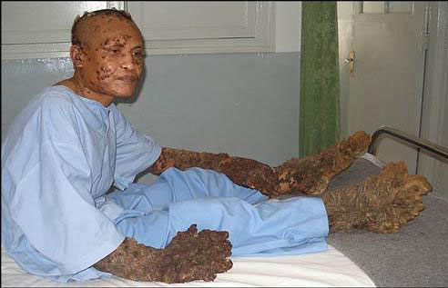 中国日报网站环球在线消息:印度尼西亚一名被称为“树人”的男子四肢仿佛树干一样长有树枝和树根状的肉瘤。日前,他成功接受手术,身上约6公斤肉瘤被切除。