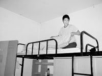 昨天下午,记者在清华大学紫荆公寓见到了这位组织大家救出20多人的小英雄。20岁的王佳明戴着眼镜,正在宿舍整理床铺(见上图)。四人一间的宿舍,上面是床,下面是书桌柜子,每两间宿舍还有一个共用的小客厅。王佳明看着小客厅说:“这么好的条件,我会好好珍惜。”