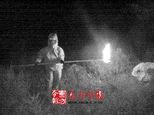 当晚7时许,天色完全暗下来,路文栋派身手敏捷的战士高向向穿上防蜂服,手拿大号尼龙袋,准备“瓮中捉蜂”。