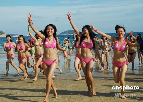 图:三亚上演千人比基尼激情派对 中国新闻网 中国新闻网官方账号 2008.08.3113:25 关注 8月30日,一场千人比基尼派对在海南三亚亚龙湾激情上演,以美丽、时尚、健康概念全新演绎沙滩文化。中新社发 尹海明 摄