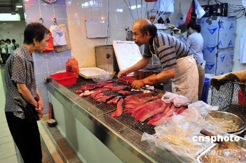 九月一日,设有五十个档位的香港新湾仔街市启用,售卖不同种类的食物和货品,包括鲜鱼、鲜肉、冻肉、水果及蔬菜。中新社发 谭达明 摄