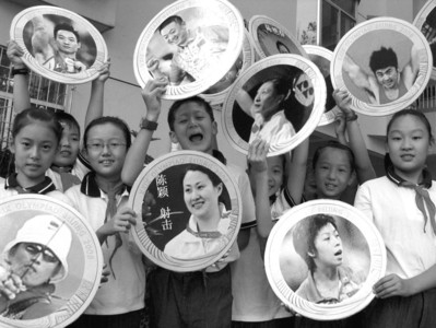 在济南市经十一路小学开学典礼上,同学们展示自己制作的奥运“金牌”