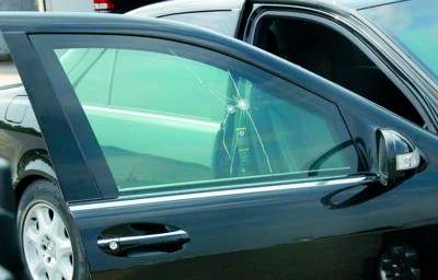 □吉拉尼的黑色奔驰车玻璃窗上有两处明显弹痕