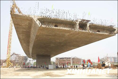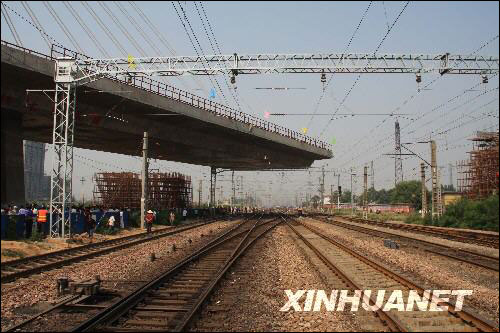 当日上午11时20分左右,由中国中铁七局三公司承建的石家庄市环城公路跨石太铁路转体斜拉桥成功转体,与铁路两侧的桥梁实现成功对接,转体斜拉桥转体重量16500吨、转体角度达75点74度,两项指标均居世界同类桥梁之最。 新华社发(罗铁锁摄)