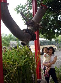 为纪念世界反法西斯战争暨中国人民抗日战争胜利63周年,昨(3)日,建川博物馆专门从汶川县宝顶山运回64年前坠毁的美国援华空军运输机起落架,并制作成“飞V”纪念亭。美领馆领事及与援华美军并肩作战的中国老兵参加落成仪式。