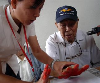 在昨日的落成揭牌仪式上,曾与援华美军并肩作战,驾驶过援华美军B-25轰炸机的飞行员张义声也专程赶到了现场,并留下了自己的手印。9月3日,是抗战胜利63周年的纪念日,也正好是他92岁生日。1943年,张义声作为中美混合团一大队一名飞行员,在“驼峰”上飞过几次。“驼峰航线”即为中印(中国和印度)空中通道,又被飞行员们称为死亡航线。1943年3月,张义声与8名队友一起驾驶8架B-25轰炸机从美国飞到印度,支持中印缅战区对日空战。老英雄回忆道,经过1万多公里、近50个小时的飞行,8架飞机都平安到达印度,对日占区的仓库、火车站等实施轰炸。11月,他加入了对日“密支拉战役”,“在中湎边境附近,我们先打距密支拉城20公里的日机场,空运大量部队到这里,再向城内进攻,但地面部队遭遇日军依托工事负隅顽抗,我们又用钻地炸弹轰炸敌工事……战斗打了两个月。”