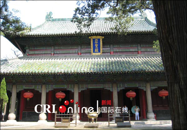 孟庙,又称亚圣庙,国家4A级旅游景区,全国重点文物保护单位。孟庙是历代祭祀孟子的庙宇。始建于北宋景祐四年(1037年),后经历代维修与扩建,形成现有规模。孟庙前后分为五进院落,有棂星门、亚圣庙坊、泰山气象门、省牲所、祭器库、康熙碑亭。自第三进院落起分为左中右三路布局:中为承圣门,有亚圣殿、寝殿、两庑、天震井、乾隆碑亭;东为启贤门,有启圣殿、启圣寝殿;西为致敬门,有致严堂、祧祖祠、焚帛池。孟庙整个建筑群包括四殿、两庑、一堂一祠、一库一所、两座碑亭、四座木坊、一座石坊,实际占地面积约为2.4万平方米。