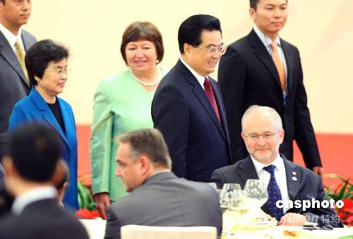 9月6日,中国国家主席胡锦涛和夫人刘永清在北京人民大会堂举行宴会欢迎出席北京2008年残奥会的贵宾。中新社发 廖文静 摄