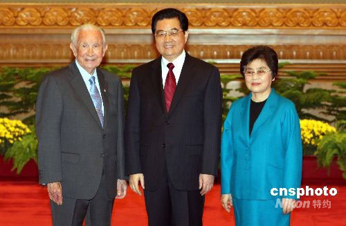 图文:胡锦涛夫妇欢迎萨马兰奇 中国新闻网 中国新闻网官方账号 2008.09.0613:35 关注 九月六日,中国国家主席胡锦涛和夫人刘永清在北京人民大会堂欢迎出席2008年残奥会的各国贵宾。图为胡锦涛夫妇与国际奥委会名誉主席萨马兰奇先生合影。中新社发 任海霞 摄