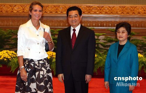 图文:胡锦涛夫妇欢迎西班牙公主爱莱娜 中国新闻网 中国新闻网官方账号 2008.09.0613:39 关注 九月六日,国家主席胡锦涛夫妇在北京人民大会堂欢迎出席2008年残奥会的各国贵宾。图为胡锦涛夫妇欢迎西班牙公主爱莱娜。中新社发 任海霞 摄