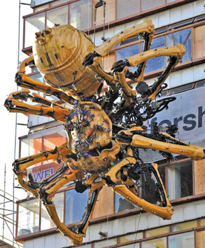 日前,英国利物浦一座大厦上忽然冒出一个长达15米的巨型蜘蛛,虽然这只蜘蛛是一只机械艺术品,但其逼真的形态仍然让过往的行人忍不住倒吸一口凉气。