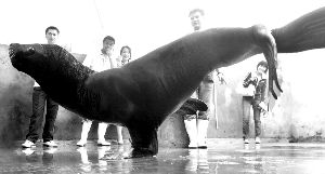昨天,杭州极地海洋公园暂养基地,刚刚到杭州的南海狮威廉王子不顾旅途的劳累,在驯养师小刘的英语指挥下,现场表演了中国功夫,作为见面礼。