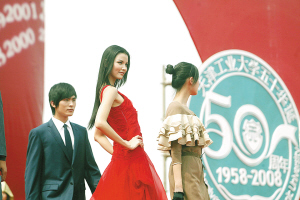 在庆典演出中,被天津工业大学聘为客座教授、为该校服装表演与营销专业的本科生授课的中国首席名模莫万丹也带来了自己的贺礼——携手50位中国一流名模现场走秀。中国模特之星大赛冠军、中国职业模特选拔大赛冠军、中国内衣模特大赛冠军、亚洲超级模特大赛中国冠军……现场为师生进行时装表演的众多国内一流名模,大多是工大的毕业生。