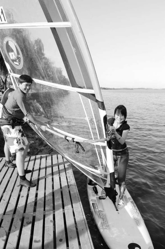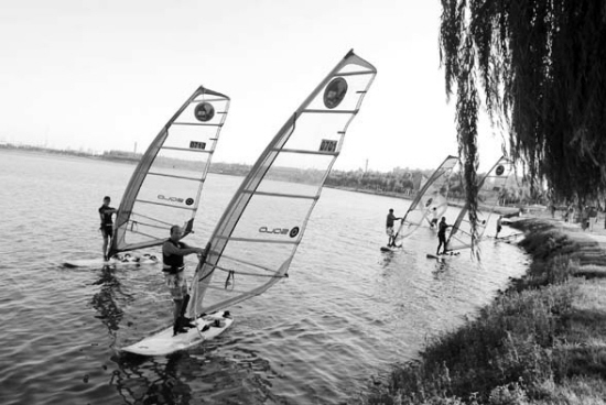 俱乐部向记者介绍,帆板运动是借助风力、潮汐等自然力而不使用任何电力汽油等发动,是纯“自然”健康运动。因此对丁香湖没有任何污染。