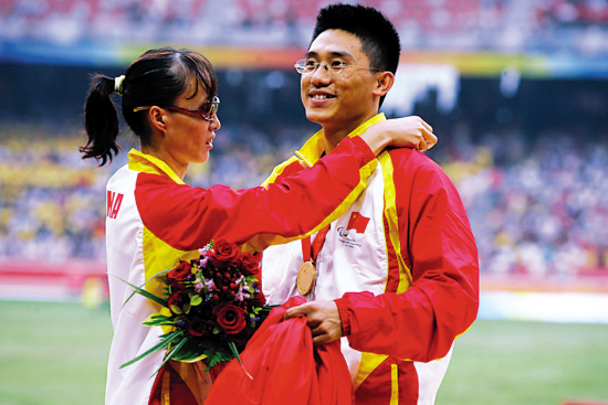 可是,就在一堆摄影记者的镜头前,吴春苗又出人意料地把金牌摘下,摸索着挂在了身旁的领跑员李佳雨脖子上!现场响起了热烈的掌声……金牌的传递并没有结束,李佳雨又跑向场边,把金牌又挂在了教练张敏珍的胸前。“鸟巢”的大屏幕展现了这感人的一幕,现场观众全体起立长时间鼓掌欢呼。