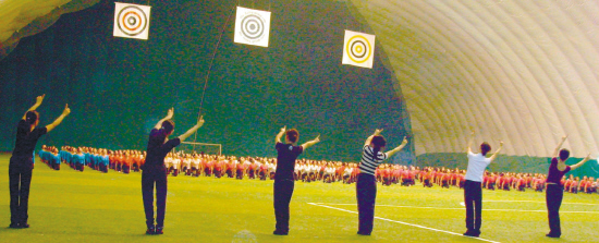 为了顺利完成演出,从6月8日到开幕式当天,近3个月时间里,赵凤老师和4名学生每天的训练时间是从上午10点直到次日凌晨两三点钟。“累了,孩子们就席地而坐。不一会儿马上再站起来又开始训练。”赵凤说,孩子们没有一次叫苦,表现的比大人还要坚强、刻苦,虽然累,他们的脸上却满是期待的笑容。