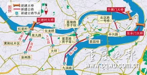 渝中区发改委相关负责人介绍,规划建设的红岩村大桥、千厮门大桥、东水门大桥及两江隧道将与现有的嘉华大桥、嘉陵江大桥、黄花园大桥、长江大桥和菜园坝长江大桥一起,形成通达的跨江联系通道。目前,千厮门大桥和东水门大桥正在论证过程中。此外,菜九路、大化路、高渝路及红黄路也将在5年内建成通车。