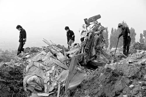 襄汾溃坝事故遇难者升至178人 中国青年报 《中国青年报》官方账号 2008.09.1303:35 关注 9月12日,搜救人员正在搜救。当日,记者从山西省襄汾县新塔矿业公司“9·8”特大尾矿库溃坝事故抢险指挥部了解到,截至12日17时,搜救人员累计发现遇难者178名,搜救工作仍在紧张进行。 新华社记者 燕雁摄