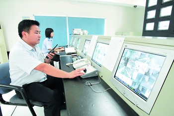 芙蓉区在全省率先推行网络化治安管理,通过现代科技手段,让治安防控尽在掌握中。这是该区芙蓉苑小区投入资金200多万元添置监控设备,在小区设置100余个“电子眼”,实施24小时监控,让居民的安全感大大增强。 石祯专 摄