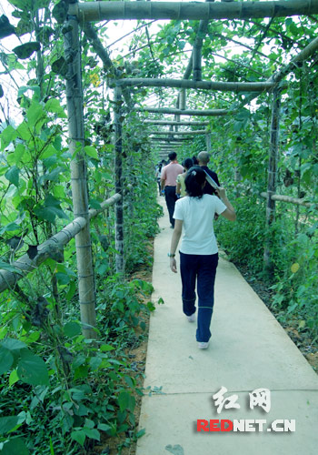 来此游玩的客人,当然也会有着难以用语言形容的享受:百亩荷塘和百亩葛园以及用豆角、丝瓜、扁豆搭建的几公里长绿色长廊,游客行走其中,那是在城里感受不到的享受,行走在宽敞的乡间公路上,沐浴着秋日阳光,微风拂面,稻穗清香迎面飘来,沁人心脾。